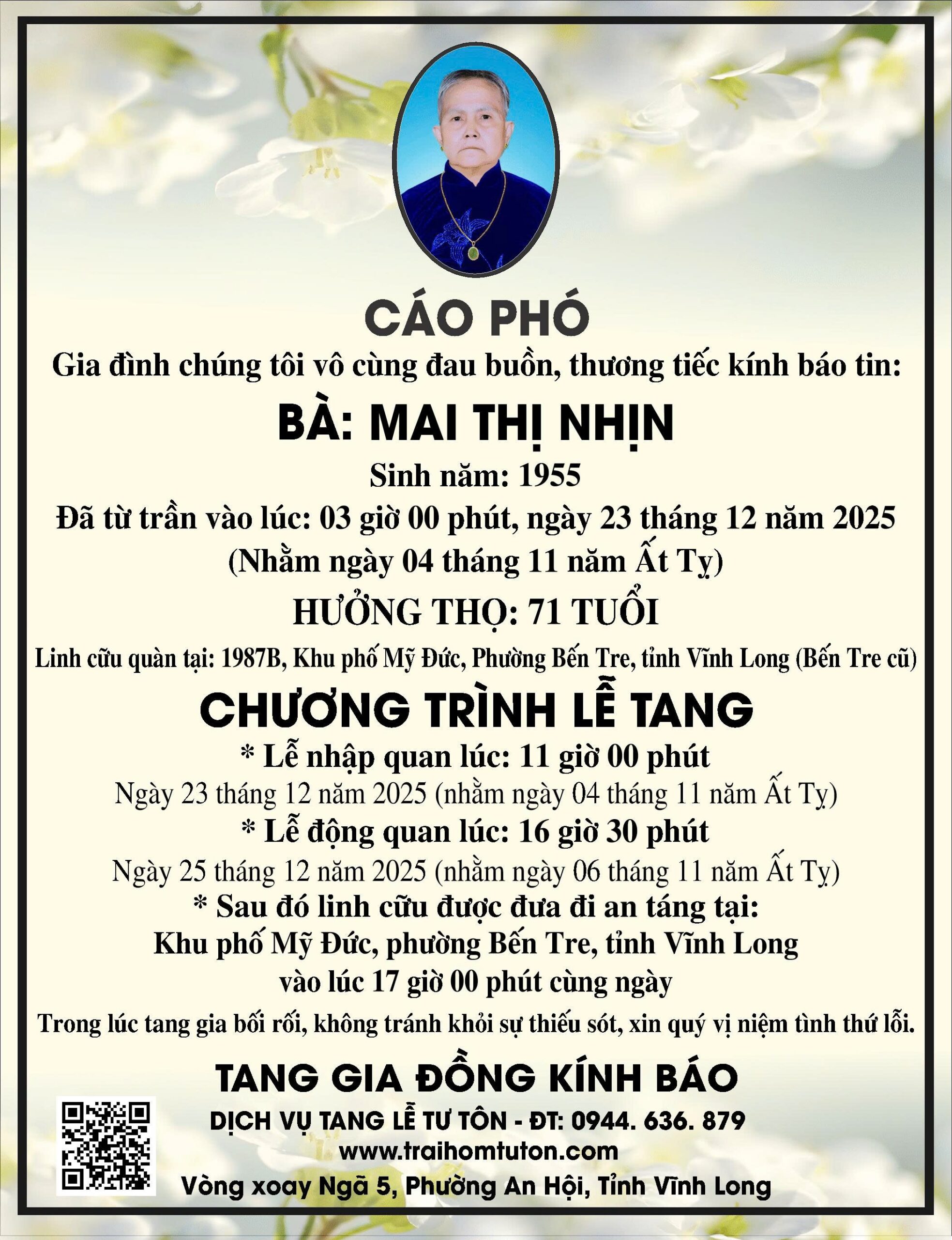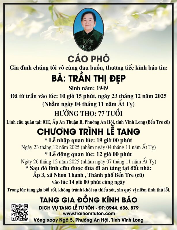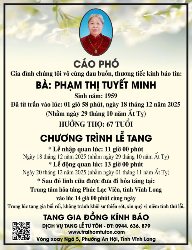 Cáo phó bà Nguyễn Thị Tuyết Minh