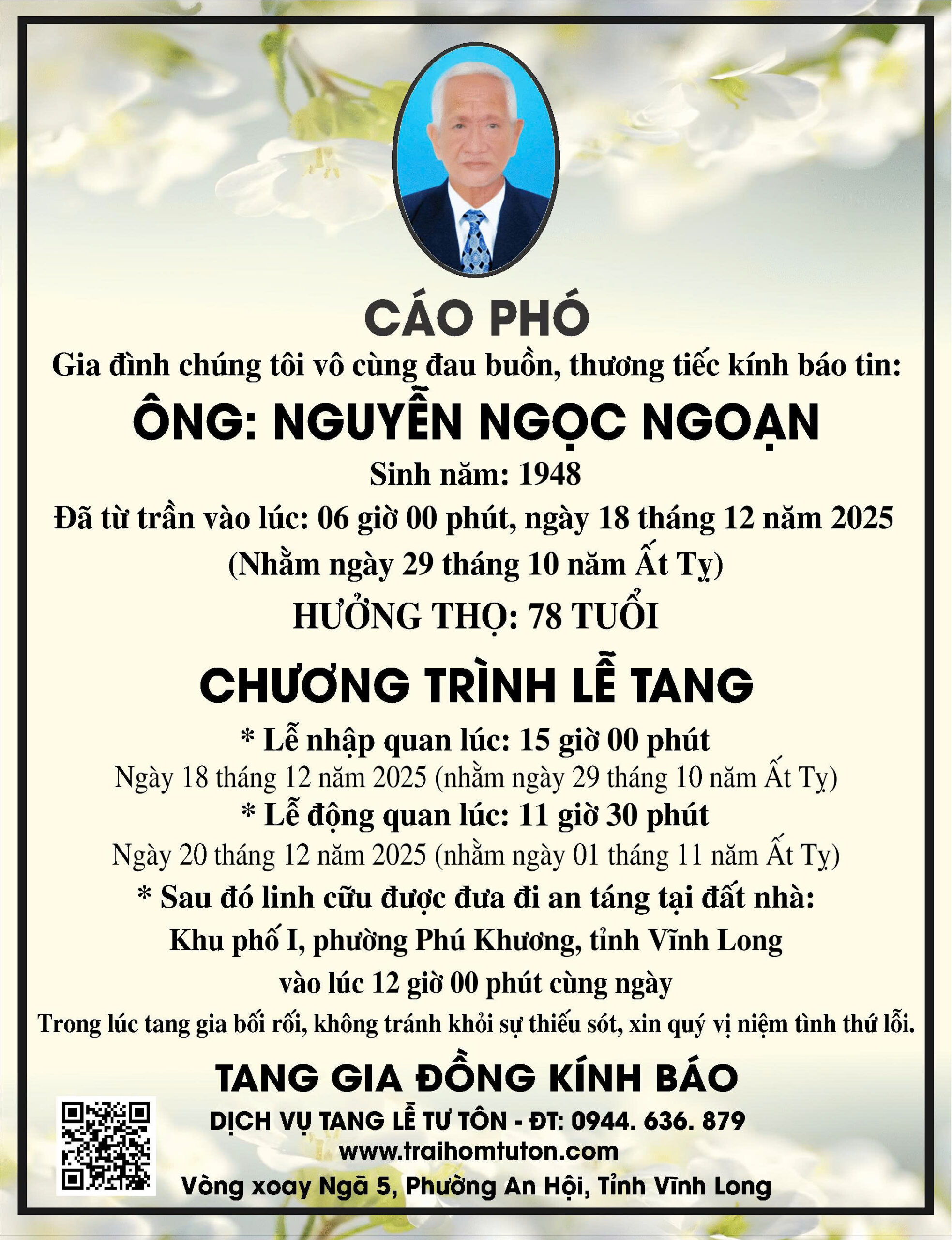 Cáo phó ông Nguyễn Ngọc Ngoạn